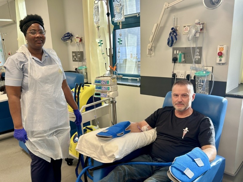 “I came to QEH specifically for this machine after researching ways to manage chemotherapy side effects. It’s really helped with the pain and numbness… and it means I can start playing the saxophone again.”